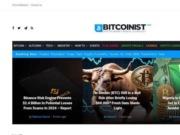 Bitcoinist is a prominent cryptocurrency news website that provides extensive coverage of Bitcoin, blockchain technology, and the broader digital asset space. The site is known for its in-depth analysis, market insights, and news updates, making it a valuable resource for investors, traders, and enthusiasts interested in cryptocurrency.